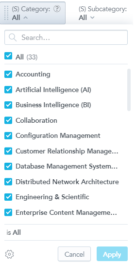 - You are drilling from the Multiple Value Dashboard to the Single Value Dashboard with the filter set to is Accounting, Artificial Intelligence . When the Single Value Dashboard opens, the first available attribute value is selected as Accounting .